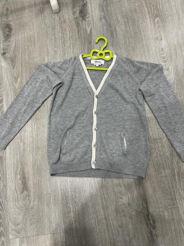 Кофта на ґудзиках bonpoint унісекс (може бути як на хлопчика, так і на дівчинку), сірого кольору Розмір 8 років Тканина котон, тягнеться Ширина в грудях 76 см Довжина 45,5-46см