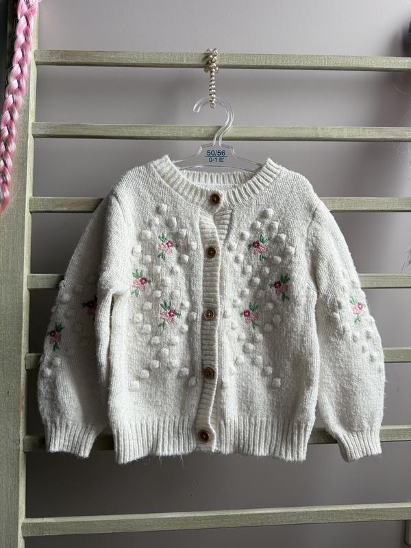 Милый кардиган на 3-4 года. С вышитыми цветочками от Nutmeg молочного цвета