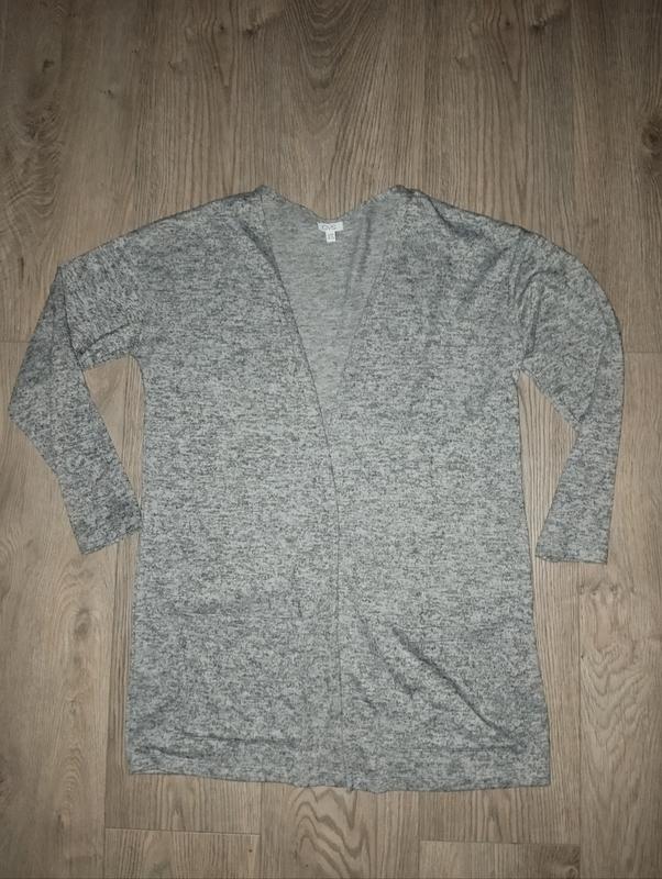 Кардиган кофта без застібки, є накладні кишені, плечі 55 см довжина рукава 47 см, ПЗ під руками 52 см, довжина 77 см.