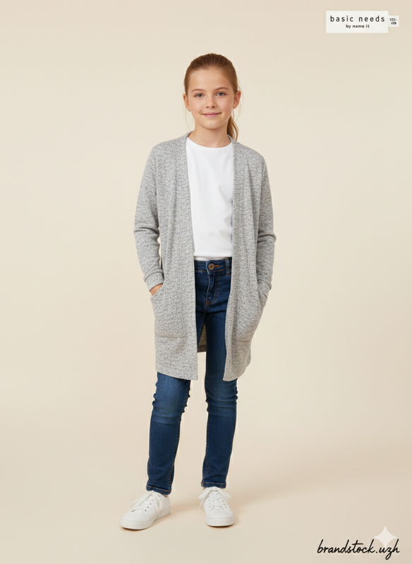 Сірий подовжений кардиган basic needs by name it для дівчинки 7/8 років 122/128 см