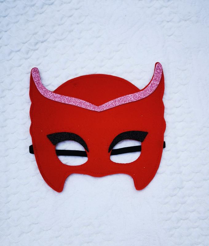 Маска детская из фетра совка из мультфильма герои в масках красная для девочки на резинке