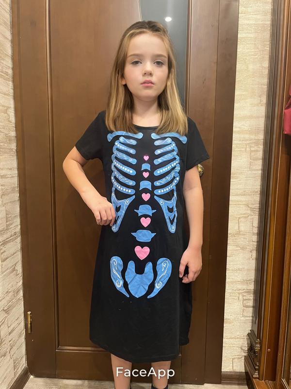 ТС 73 Дитині на фото майже 10 років. На неї завелика Стан чудовий. Без нюансів. тканина дуже еластична. Заміри зроблені в спокійному стані. довжина 84 напівобхват грудей 43 талії 38 бедер 45 рукав 13 плечі 36