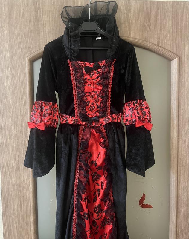 Дуже красива оксамитова сукня для святкової вечірки,,Вогняна Мавка,, Розмір на 6-8 років,але дивіться будь ласка заміри Довжина *85 см Рукав *42 см Ширина по плечах *32 см Пог*33 см Пот*30 см Довжина від плеча до талії *28 см Сукня максі Відмінний стан Пересилаю