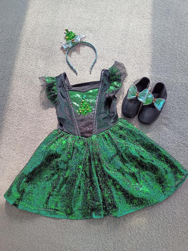 Костюм " Ялиночка" 🎄на вік 3 -3,5 рочки Стан ідеальний, ручна робота, під верхньою спідницею є карман з вшитою гірляндою , при натисканні кнопки, гірлянда починає мерехтіти, обруч ручної роботи з маленькими бубінцями, взуття 26 розмір, довжина устілки 16 см