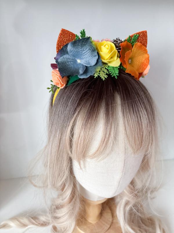 Вушка зроблені глітерного фому. Прикрашені квітами з тканини,листам і тканини