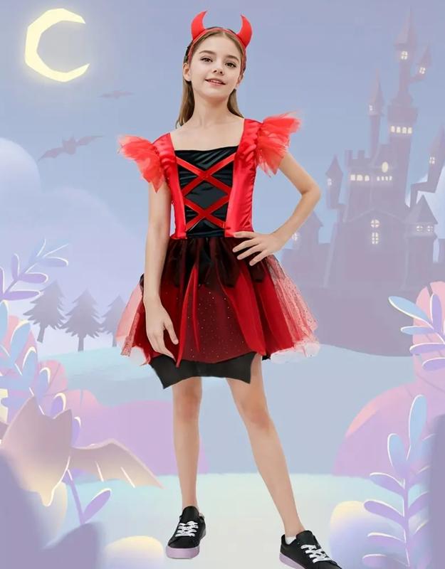 Чудовий та оригінальні набір на вечірку.Яскрава сукня для дівчинки та оригінальний обідок з ріжками не залишать без уваги на будь якій вечірці чи карнавалі. Розмір: 5-6 років.