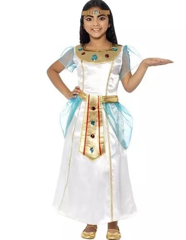 З цим елегантним дитячим костюмом Клеопатри кожна дівчинка миттєво перетвориться на царицю Нілу! Костюм складається з сукні та головного убора. Стан дуже гарний. Без дефектів Довжина 114 см, ПОГ - 41 см, ПОТ 30-40 см, ПОБ -49 см, головний убір полуобхват 22-30 см