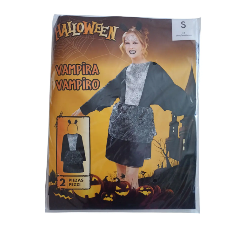 Костюм для халавін для дівчинки з обручем вампір s різнобарвний