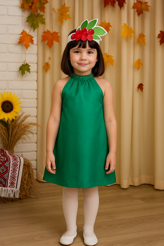 Сукня без рукавчиків,вільного крою , на шиї застібається на ґудзикі і по краю прикрашено бісером Довжина сукні 58 см Пог 33