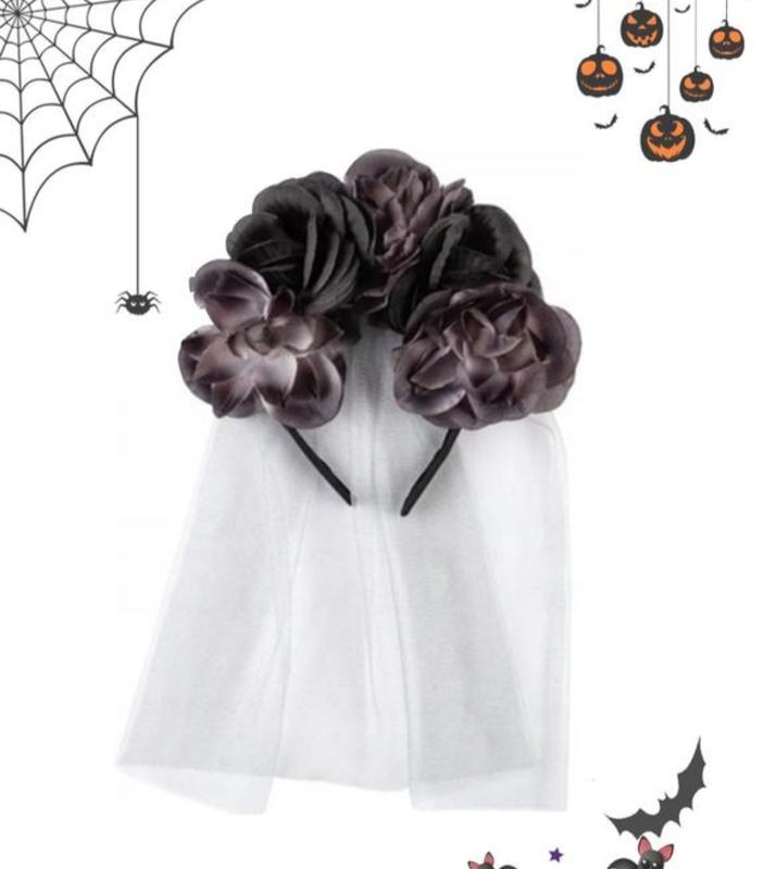Сірий обідок із трояндами та фатою на хеллоуїн, готичний обруч, санта муерта
