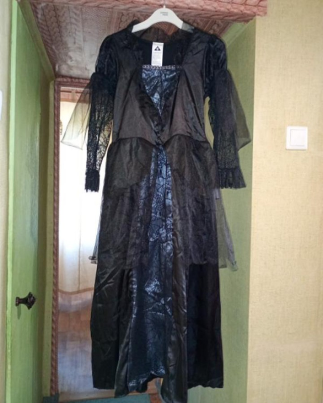 фірмовий карнавальний костюм відьмочки стан нового розмір вказано на 11-14 років с під'юпником пог 39см пот37см довжина виробу 121см