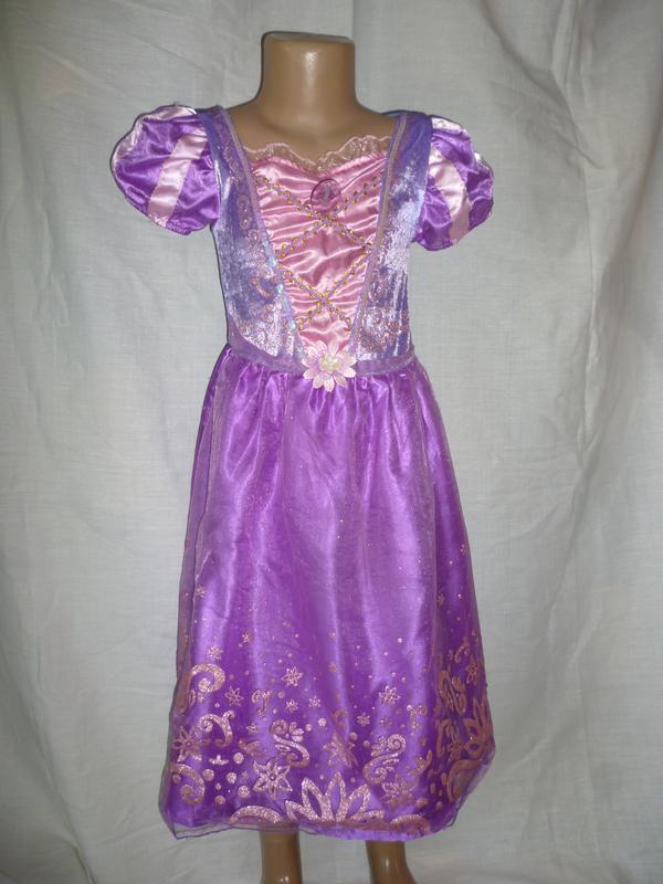 платье Рапунцель на 5-6 лет, в хорошем состоянии, На юбке есть внизу зацепки, при ношении не заметны, по бокам по швам присутствует кошлатость,все нюансы показано на фото длина 78см,от плеча до пояса 30см,ширина под подмышками 29см,пояс 25смм + плечо 3см,плечи 26см отправка после оплаты