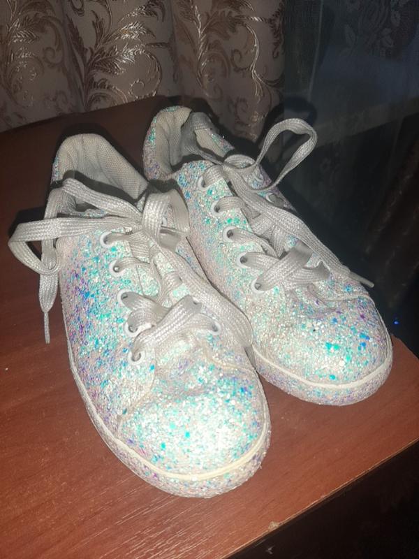 кеди дитячі з блискітками. Вживу перламутово-срібні. дуже круті. нажаль фото так не передає.