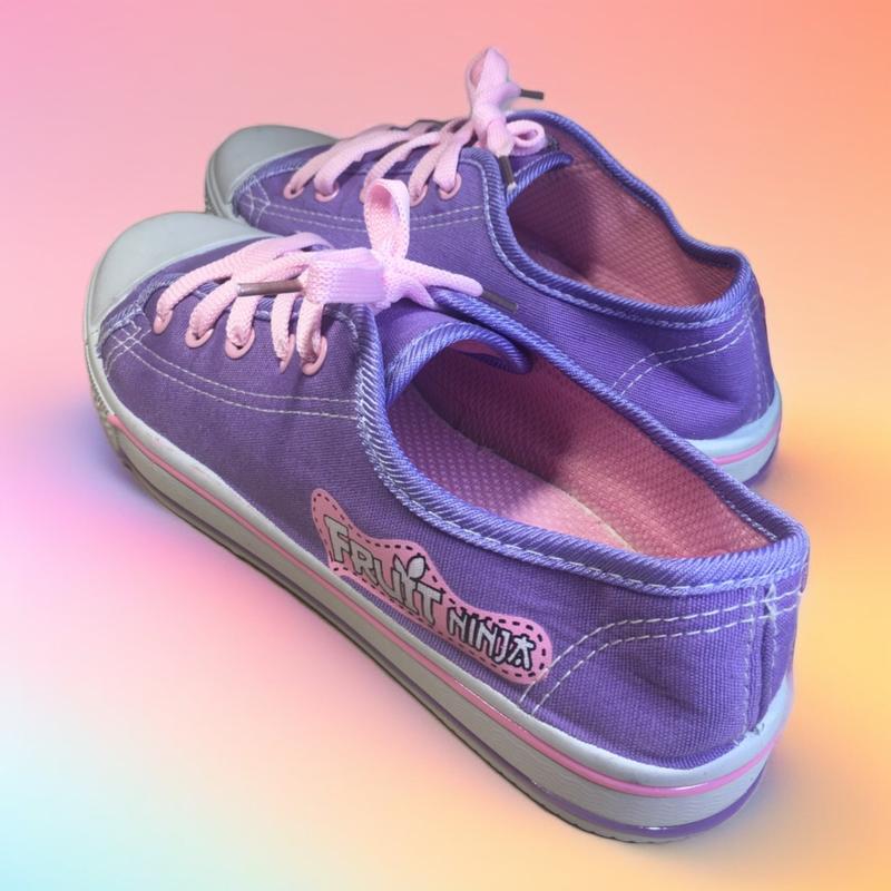 Фіолетово-рожеві кеди з написом "fruit ninja"
