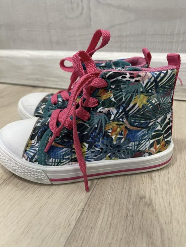 Кеді з тропічним принтом на блискавці збоку від ТМ Coccodrillo (Польща). Ширину стопи можна відрегулювати за допомогою шнурівки. Розмір 25, стан 9/10, взули пару разів