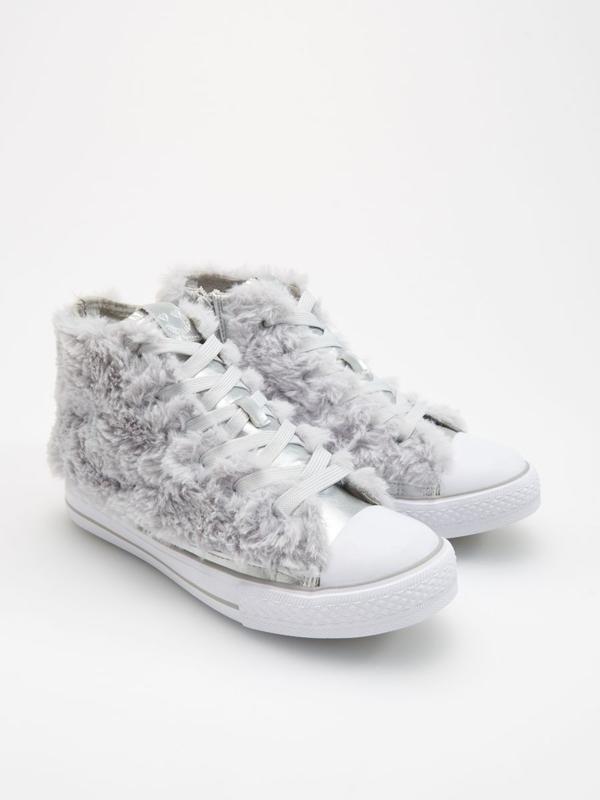 Кеди сріблясті зі штучним хутром зручно вдягати завдяки блискавці , шнурками можна регулювати об'єм. Розмір 33, довжина устілки 21см. Розмір 34, довжина устілки 22см. Розмір 35, довжина устілки 22,5 см. Розмір 36, довжина устілки 23 см. Розмір 37, довжина устілки 24 см