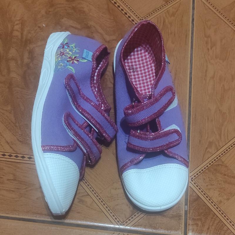 Нові кеди , не ношені, купили міряли, але коли прийшов час носити то стали замалі, по підошві видео , що не нршені, в лівому на устілці є плямка не знаю звідки взялась (на фото видно) не пробувала прибирати