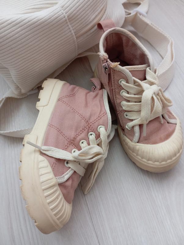 Дуже класні, м'якенькі кеди Розмір 24 Носили дуже мало В прекрасному стані( із недоліків трішки жовтуватого є через неправильне сушіння після прання) довжина устілки 15 см
