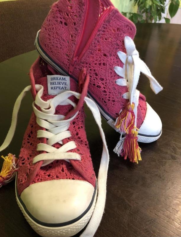 Стильні ажурні (з натуральних х\б ниток) кеди Next у відмінному стані. розмір 34,5, устілка 21см. Можна носити в демісезон у теплу погоду і, звичайно, влітку. Особлива зручність – не потрібно зав'язувати шнурки – збоку є блискавка.