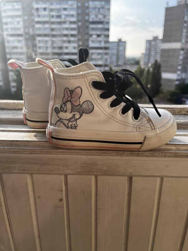 Високі кеди на шнурівці. Стан хороший. З нюансів на одному є пошкрябинки та трошки пожовтіли стрічки позаду. Устілка 14,5 см