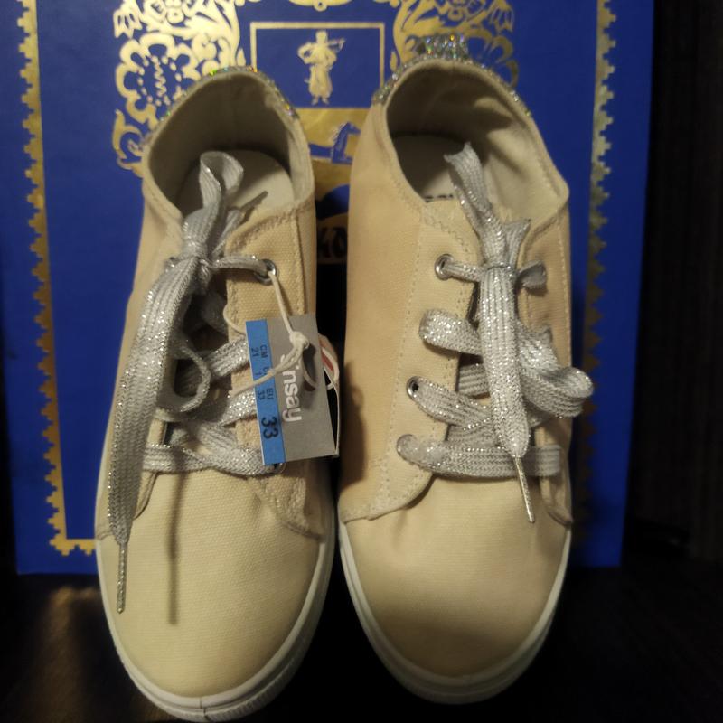 Текстильні кеди для дівчат бежевого кольору. Устілка 21.5 см.
