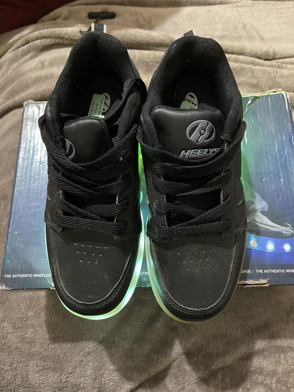 Роликовые кроссовки Heelys 21 см. Черные.Все работает, заглушки, без царапин,подошва светится.Взгляд идеальный
