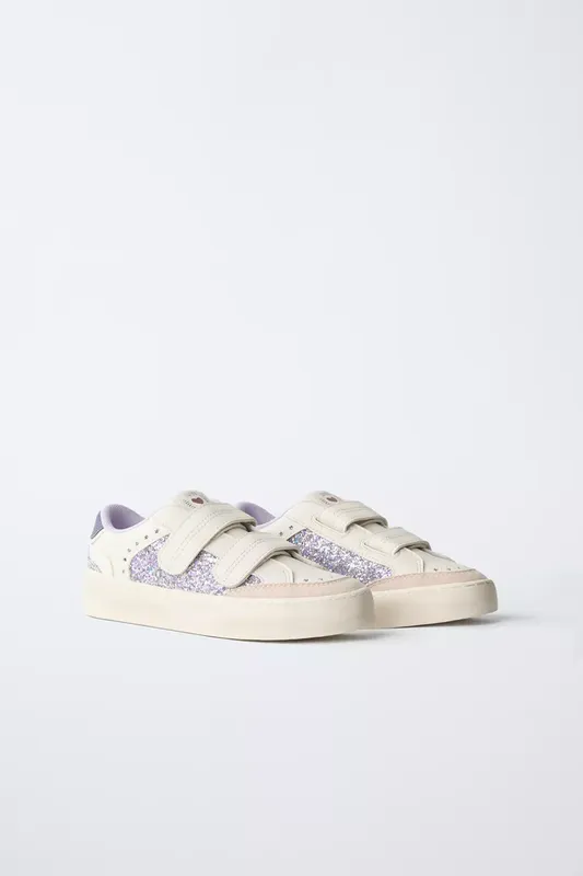 Кеди з блискітками. Застібка регулюється двома ремінцями на липучках для кращої фіксації. Гнучка устілка. Гумова підошва.