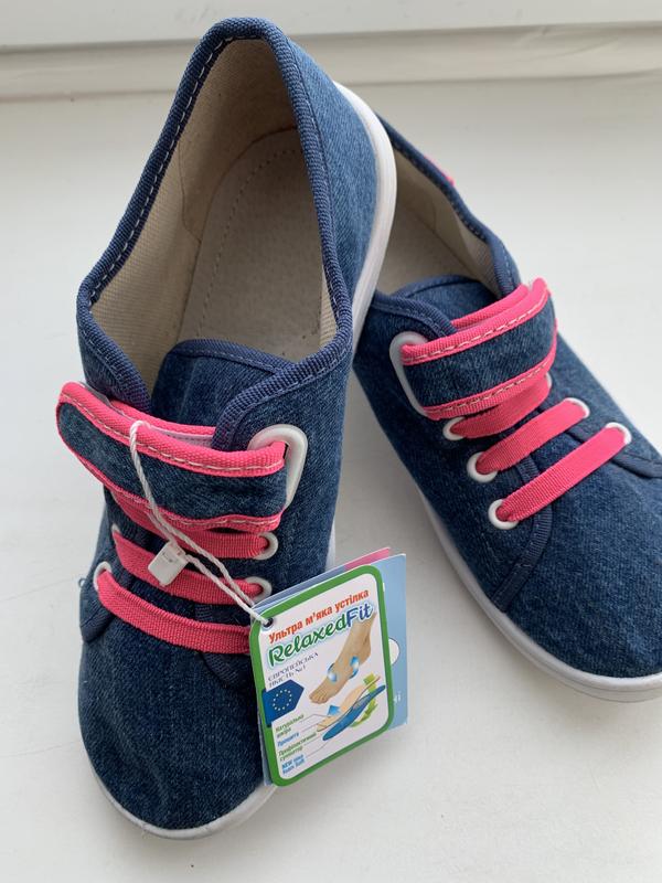 Кеди для дівчинки джинсового кольору з рожевими гумками дуже гарні та зручні . Вони ортопедичні , мають шкіряну устілку , яка має дихаючі властивості,Міцна підошва з поліуретану , гнучка і не ковзає під час руху,Застібка ідеально фіксує ногу Розмір -34
