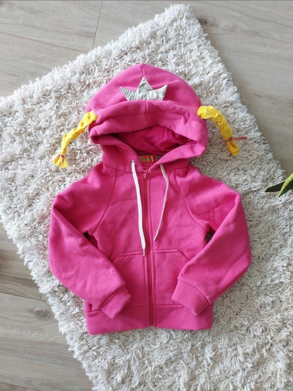 Кофта-іграшка українського виробника Zabavka. Ціна нової - 950грн. Зручно брати у подорож і як іграшку і як кофту) Розмір заявлено 116, але як на мене, трохи маломірить. На стороні іграшки корона принцеси трошки стерлася в куточку (є фото), все інше в ідеальному стані, надягали декілька разів всього. Склад: футер: 80% бавовна 20% поліестер.