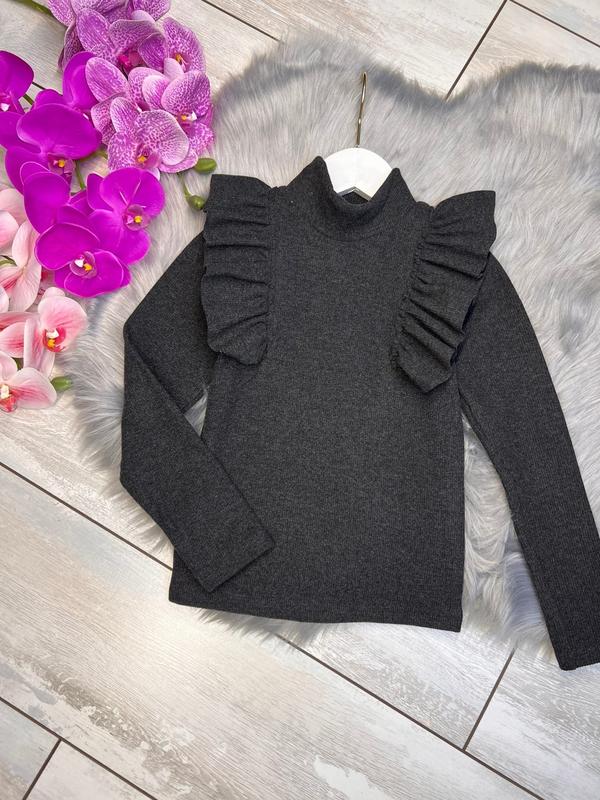 Модний гольф для дівчинки тканина-трикотаж рубчик, прикрашено рюшею довжина/рукав/пог 128-42/47/30 134-44/48/31 140-46/50/32 146-48/52/33 152-49/55/35 артmasya