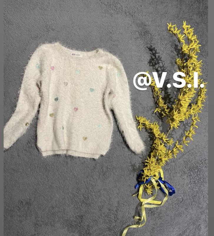 Фото на тілі немає Воротник круглий Знизу є розпорки Тягнеться Довжина 46 см) Плечі 30 см) Пог 37,5 см) Пот 36 см) Знизу 35 см) Рукав 44,5 см) Із нюансів-на рукавах є катишки і місцями незначні плями усе вказано на фото Не критично Нюанси у ціні враховано Підійде на 6-8 років оріентуйтесь по замірам.