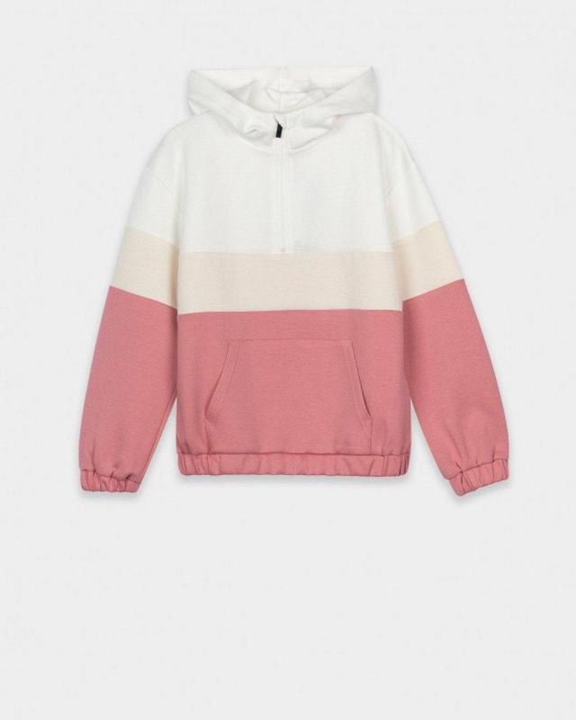 Худі кремово-рожевого кольору для дівчаток. На передньому полотні виробу - велика функціональна кишеня "кенгуру". Низ моделі та рукава на гумці. Худі (толстовка) оригінального дизайну, чудово поєднується з джинсами, спортивними штанами та іншим одягом у стилі casual. Модель виконана в пастельних кремово- рожевих тонах. Матеріал виробу - поліестер, віскоза, еластан. Тканина міцна, еластична прослужить довго. У процесі експлуатації виріб не втрачає форми, кольори не вигоряють і залишаються яскравими та соковитими. Худі кремово-рожевого кольору, європейської марки Tiffosi, популярно у дітей- підлітків, які цінують сучасний дизайн та відмінну якість. Країна ТМ Tiffosi - Португалія.
