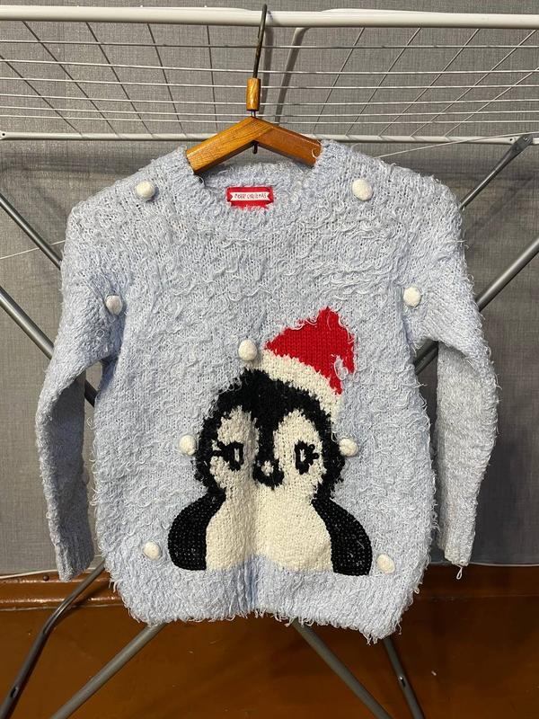 Свитерок новогодний с пингвинчиком фирмы George.Без деффектов По бирке 5-6 лет(110-116) Замеры: длина 48 см,длина рукава 34 см,полуобхват груди 37,5см)