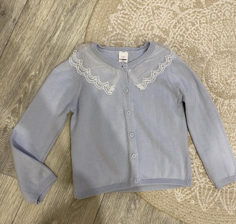 Дуже ніжна кофтинка блакитного кольору. Мережево додає неперевершеної легкості в образі. Вік 3-4