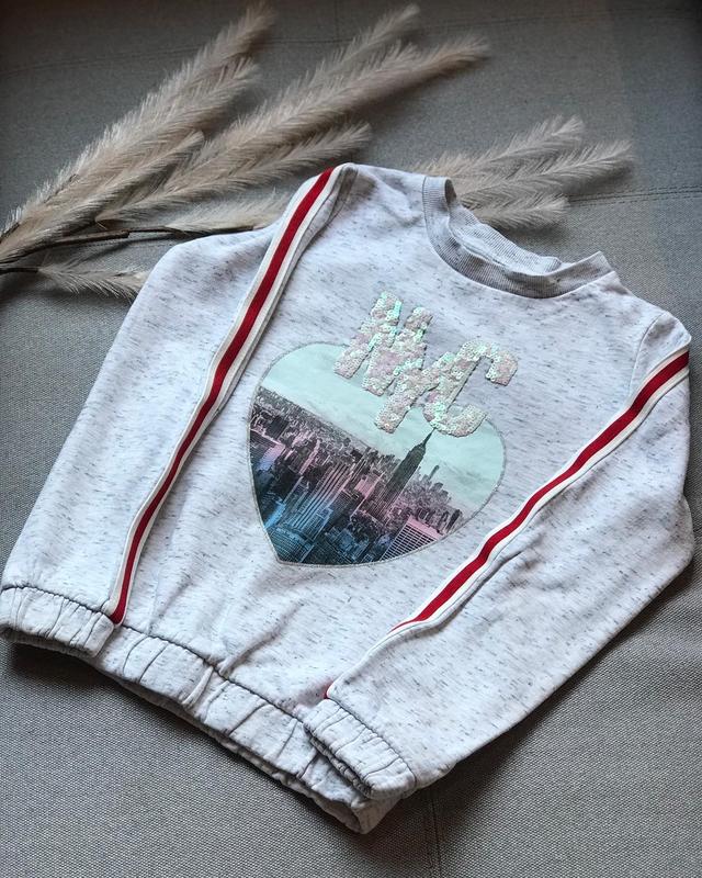Тепленький світшот в чудовому стані. На зріст 122-128см. Букви з паєтками