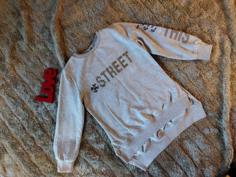 Стильная кофточка с бусинами и надписями, смотрится отлично. Без дыр.По бирке 5, 110 см.Замеры: ПОГ - 34 см ПОТ - 32 см ПО низа - 36 см Длина рукава - 37 см От плеча до низа (перед) - 44 см От плеча до низа (зад) - 50 см По всем интересующим вопросам пишите.Могу отправить только Укрпочтой (другого ничего нет).ШАФА доставкой отправляю.Смотрите другие мои объявления.Всем мирного неба и хороших покупок.