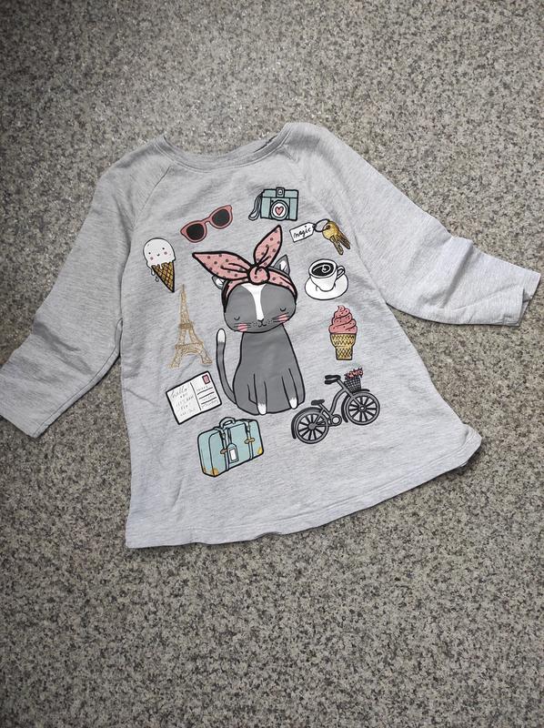 Кофта, туніка для дівчинки 4-5 років, зріст 110. Можна носити до зросту 122 як кофтинку з рукавом 3/4. Якість та стан відмінні. Виміри: рукав-реглан 40 см, пог 34 см, пот 39 см, по низ 50 см, довжина 52 см.