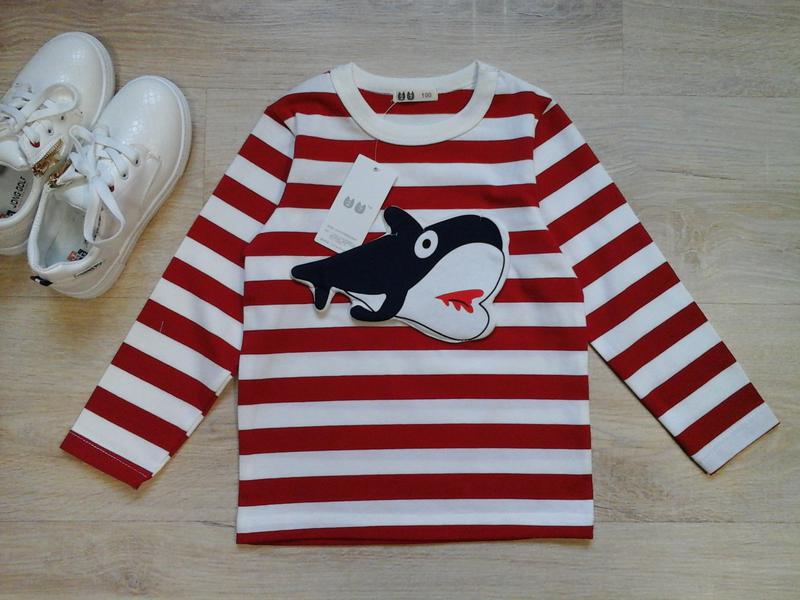 Прекрасна трикотажна кофта. Підходить як хлопчикам так і дівчаткам. Приємна на дотик тканина (стрейч кулір) не подразнює шкіру дитини. Кругла горловина добре розтягується. Красива нашивная аплікація на грудях у вигляді акули прикрашає кофту.