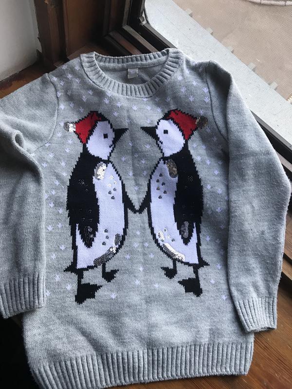 Свитер с пингвинами,теплый Длина 56 см Ог 40 см Рукав 49 см