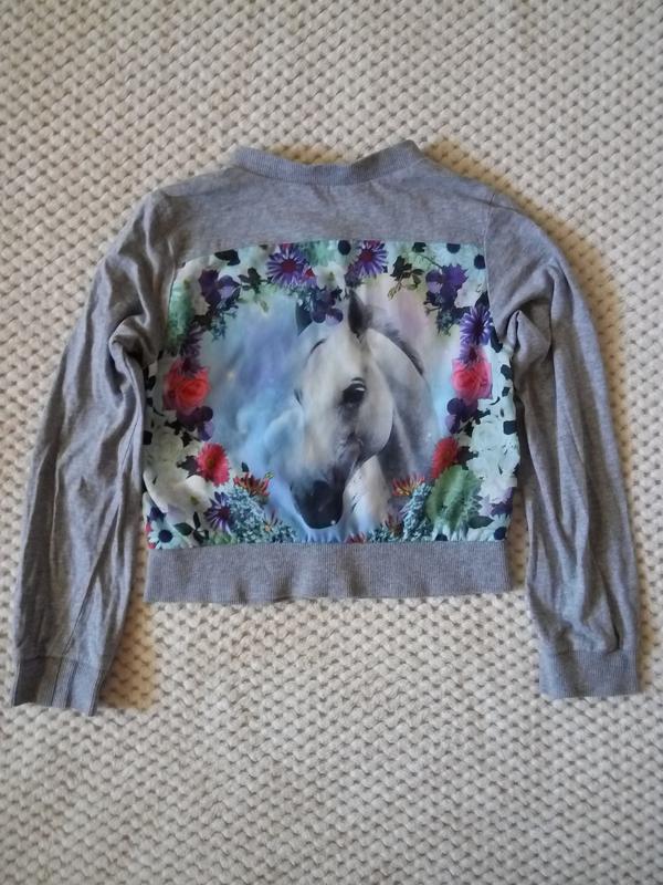 летний бомбер H&M 8-9 лет рост 134 рукава из трикотажа, перед и спинка из полиестера длина 37см, ширина 33см, рукав от плеча 46см