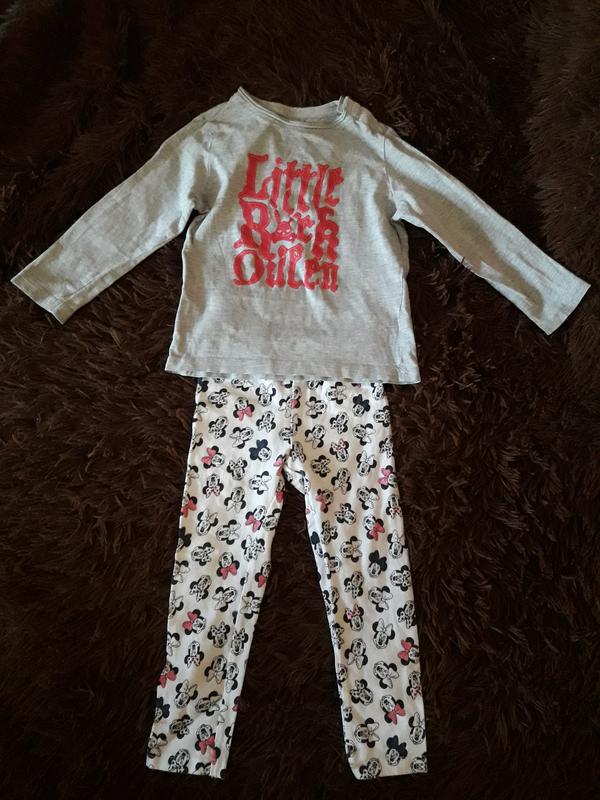 Реглан +лосини. Без дефектів. На дівчинку 2-х років. Орієнтуйтеся на заміри. Реглан ( 95% бавовна, 5% віскоза) Довжина 34 Рукав 31 ПОГ 29 Лосини з Міккі Маусом ( 95% бавовна, 5 % еластан ) Довжина 46 КРОК 33 ПІТ 21-24 ПОБІДИ 23-28 Запитуйте буду рада відповісти на всі ваші запитання!!!