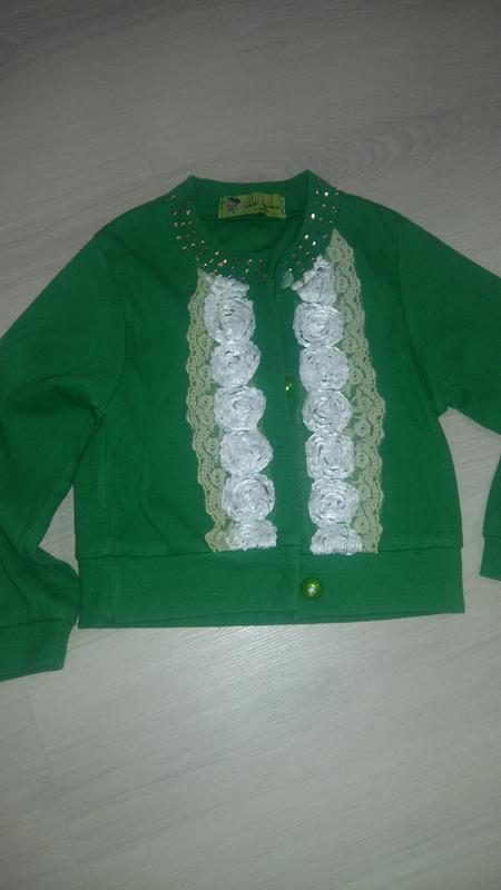 гарна кофта насичено зеленого кольору. розмір приблизно на 5-6 років