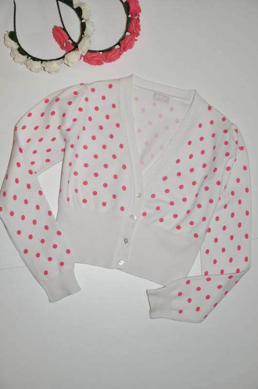 Продам милу болерошку в горошок фірми CQ. Стан і якість відмінна, дефектів, плям немає. На етикетці вказаний вік 6-7 років, ріст 122см. Довжина 34см, рукав 45см, плечі 29см, ПОГ 35-36см, тягнеться.