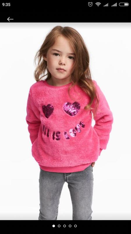 Плюшевий джемпер для дівчинки H&M М'які і приємні до тіла, для ваших дівчат модниць! 1/2, 4/6 років 1,5/2 років пог - 29 см, плічка 21 див рукав-31 см, довжина по спинці 33 див. Оплата на картку Приватбанку відправка уп чи НП