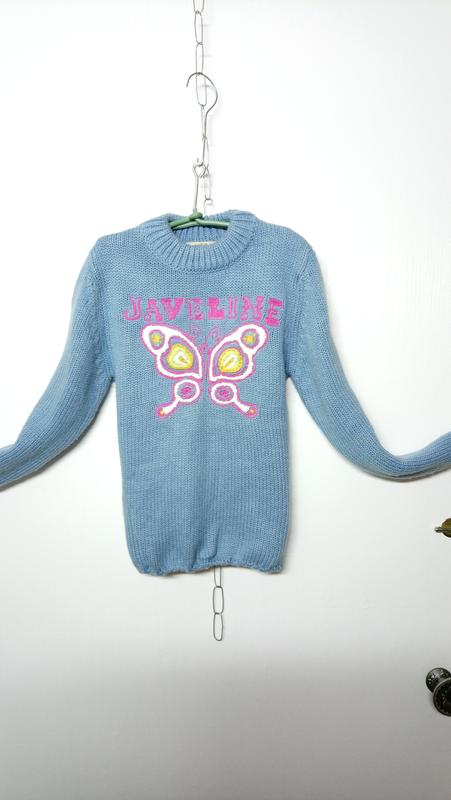Колір красивий сіні-блакитний з блакитним переливом (фото не передало кольору точно) гарний під джинси 👖 Дл.з - 46, пог-31, 5 Плечі - 30, низ - 29(тягнеться Рукав - 44,5