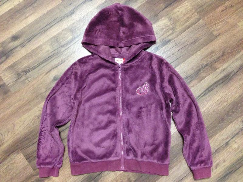Гарненька кофточка для дівчинки в дуже хорошому стані,дефектів немає,катишки тільки всередині,на манжетах катишек немає.Колір ближче фото 2,поліестер,зростання вказаний 134,реальні заміри: довжина по спині 45см, ширина плечей 35см, плече 9см, довжина рукава від плеча 47см, ширина 40см.