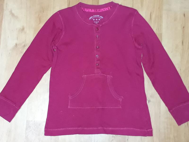 довжина 41см ПОГ 31.5 див рукав-36 см Кофточка в хорошому стані на 4. для дому. Плям немає. Видно що річ б/у. тканина рубчик. 100 бавовна. Дуже зручна і класна кофточка. наша улюблена.