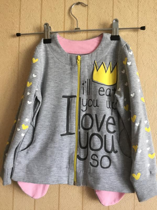 Стильная, очень красивая,трикотажная кофта на замочке для девочек, отличного качества, производства Украины, торговая марка Робинзон, трикотаж хорошо тянется и садится по фигуре ребёнка. Новая с биркой, цена снижена, смотрится великолепно. Есть размер на рост 98 полномерные соответствуют своему размеру.