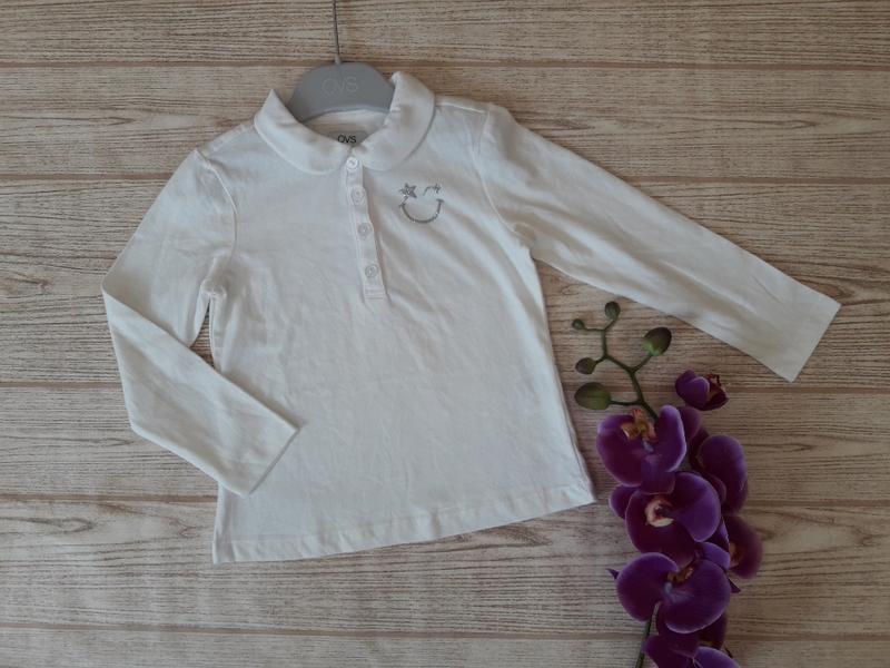 Нарядный белый реглан с воротничком и смайликом на груди с объемных блесток. Размер 3-4 года. Ткань очень приятная на ощупь. Качество отличное. Смотрите другие мои объявления, много красивой фирменной одежды в наличии!
