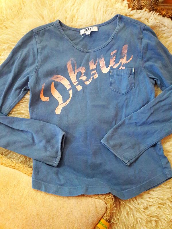 Синя бавовняна кофта з рожевим малюнком у вигляді назви бренду. Дефектів немає. Часткове пошкодження бирки Довжина по спинці-41 Напівобхват під пахвами-33 ПІТ-30 Ширина плечей - 28 Довжина рукава-45 Добре тягнеться